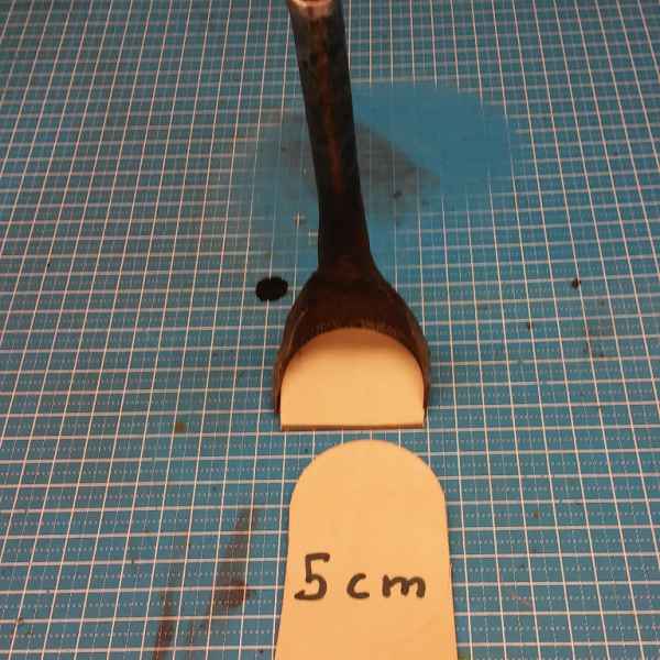 Paps brauchte für seine Lederarbeiten noch ein Stanzmesser, um die Enden von 50mm-Gürteln für meinen Bruder zu kappen. Habe dazu einen 12mm Rundstahl genommen, den ich irgendwann mal aus einem alten Ständer für Bohrmaschinen retten konnte (hier haben wir wieder das Thema Nachhaltigkeit!). Der Stahl scheint aber schon genügend Kohlenstoff zu beheimaten, dass man die Schneide auch ein wenig härten kann. So genau kann man das bei so einem Stahl ja nicht voraussagen – sonst kann er halt nur weiches Leder kappen… 😉