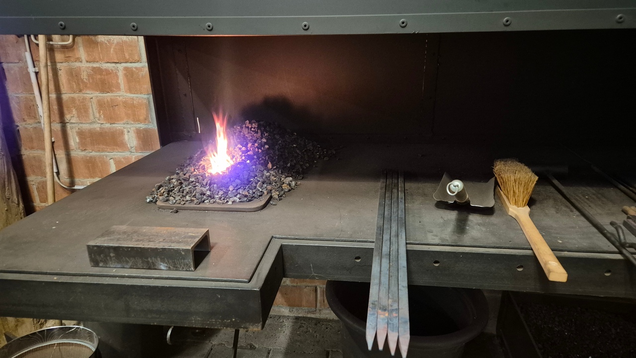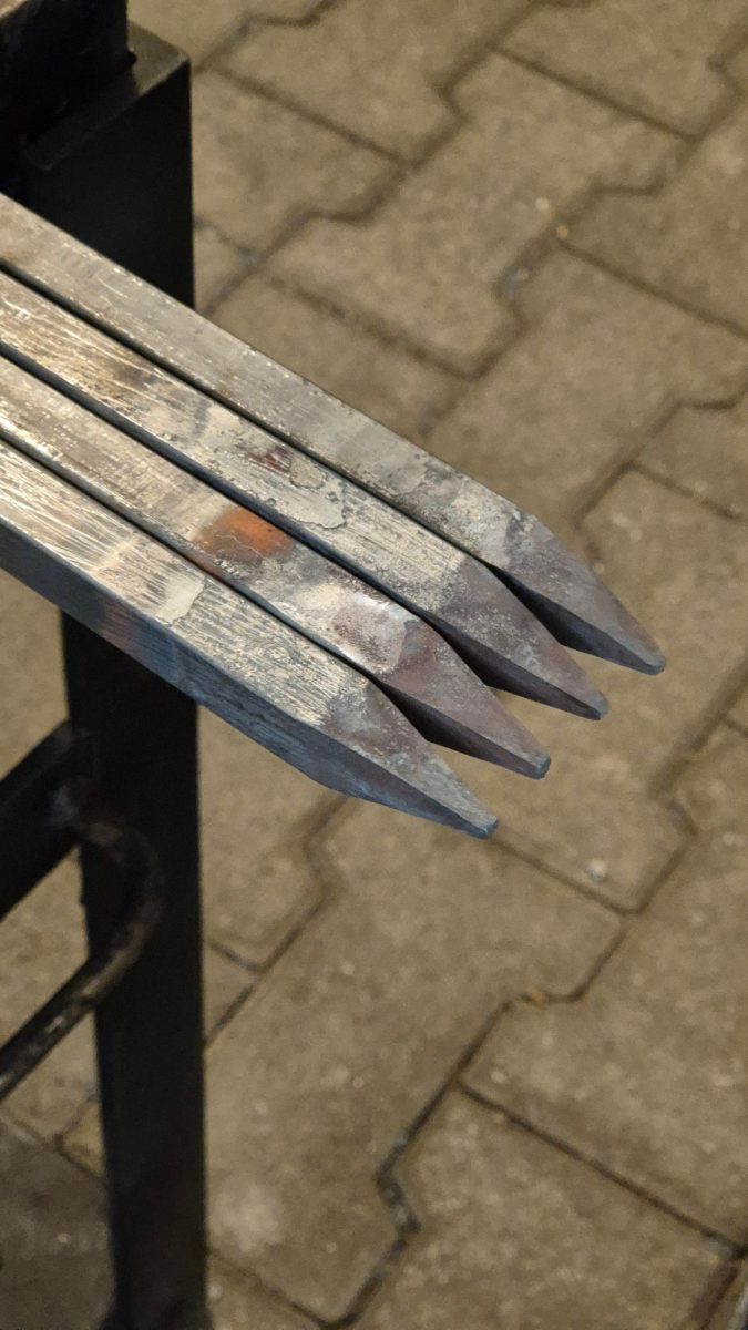 Die unteren Enden habe ich im Vierkant spitz auf ca. 20mm ausgeschmiedet.