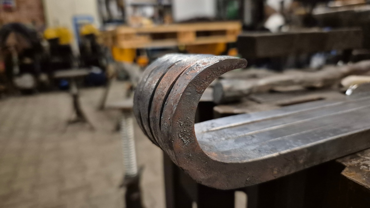 Die Bögen oben sind auf 85…90mm einseitig geschärft und um die kürzere Seite herum halbrund um einen Radius von 20mm gebogen.