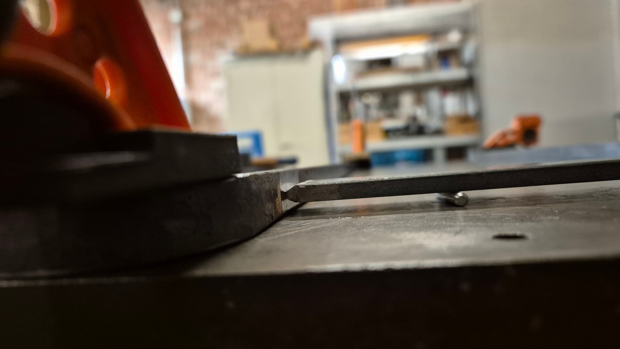 Um die Höhe der Klinge mittig zwischen die Vierkante zu bekommen, habe ich dünnen Rundstahl gesucht… ich meine um die 2,5…3mm herum.